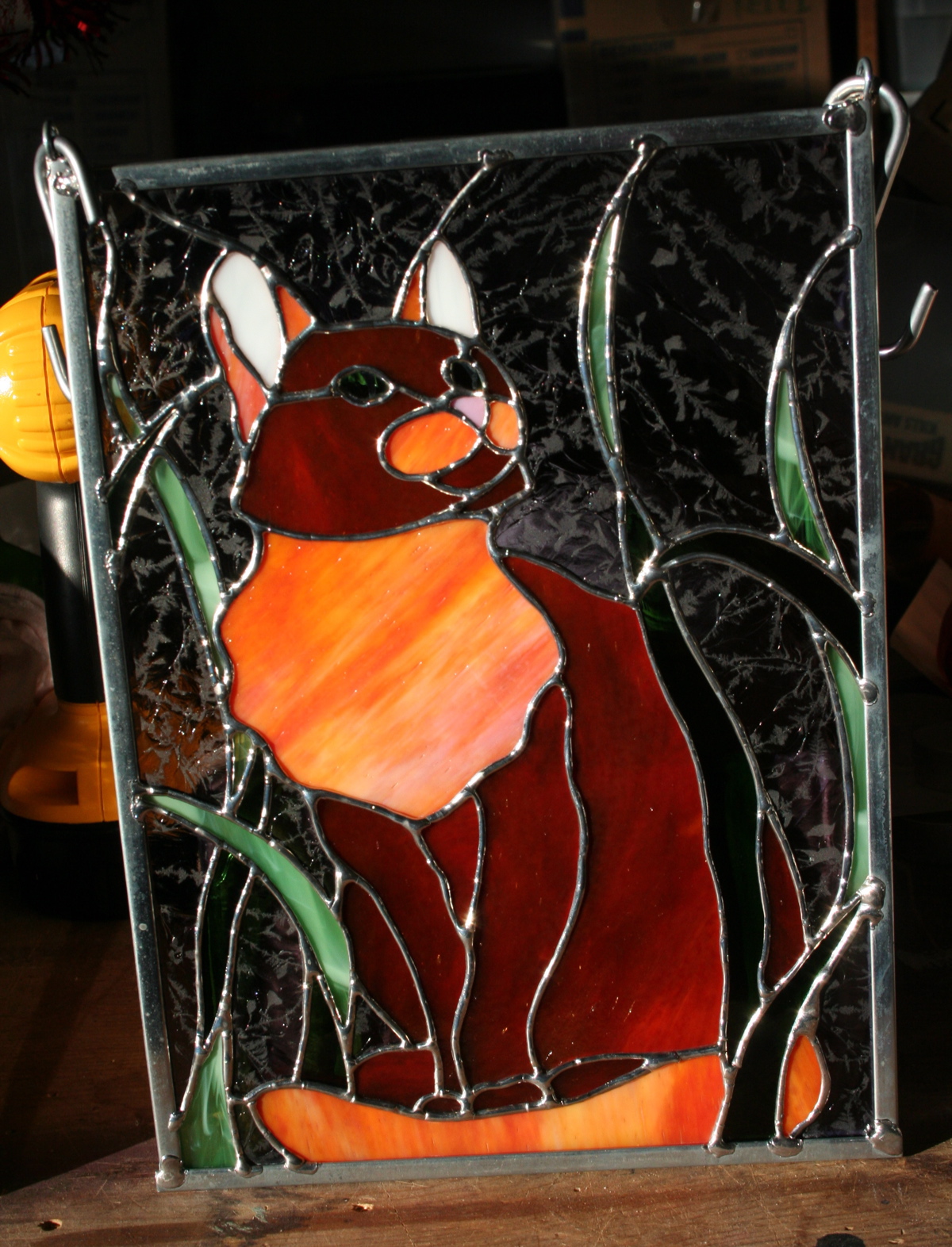 This kitty was a quickie project, a gift. it is a great example of how light transmission changes the color of the glass.